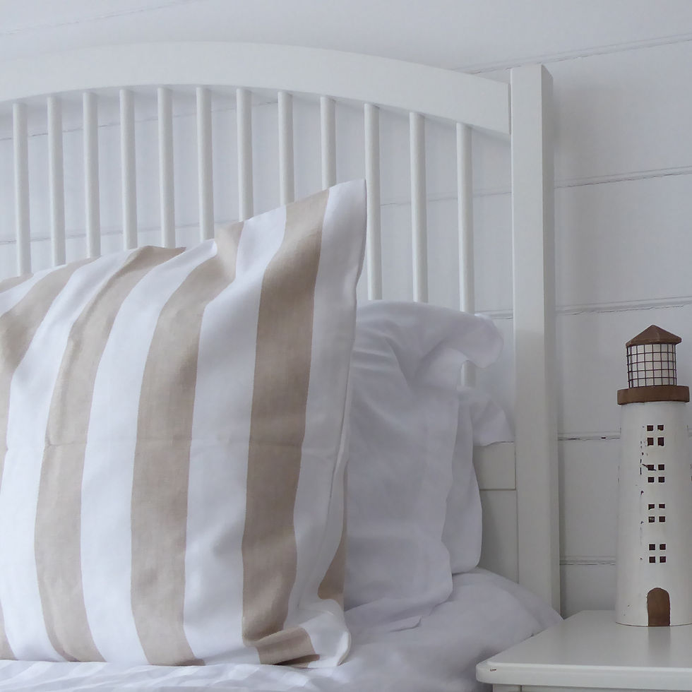 BEACH HUT SCENE COTTON RECTANGULAR CUSHION